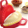 For the crust (or shell), you'll need either pizza dough or pie crust dough. Then it's easy: roll the dough, use the back of the press to cut circles, fill the press cavity, and fold and seal your little pie.